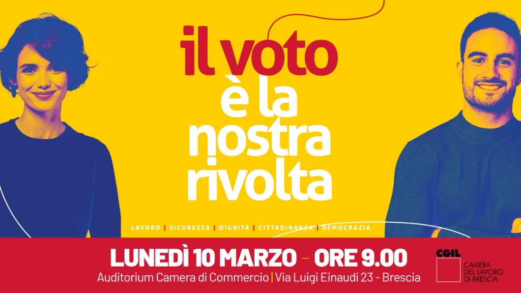 Cgil Brescia organizza una Assemblea delle Assemblee Generali per discutere dei cinque referendum che riguardano il mondo del lavoro, la sicurezza, la dignità, la cittadinanza e la democrazia. Saranno presenti circa 500 delegate e delegati. L’evento si terrà il 10 marzo 2025, dalle 9.00 alle 13.00, nell'Auditorium della Camera di Commercio in via Einaudi 23 a Brescia.